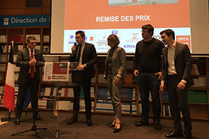 Lors de la cérémonie de remise des prix, coprésidée par Véronique Lehideux – directrice adjointe de l’information légale et administrative -, Thomas Lesueur – directeur adjoint des services judiciaires du ministère de la Justice – et Benjamin Jean – président de l’association Open Law* le Droit Ouvert, ont été primés :